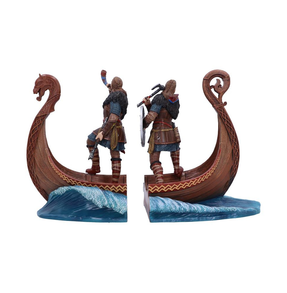 Celebrate the fearless Viking raider Eivor with Nemesis Now's Officially Licensed Valhalla Bookends. Stood proudly on both ends of the longship, Eivor can be seen. Wearing their signature armour, sailing across the icy North Sea, they are armed and ready for battle. Cast in the finest resin and masterfully hand-painted, these bookends will display and secure your most prized possessions.