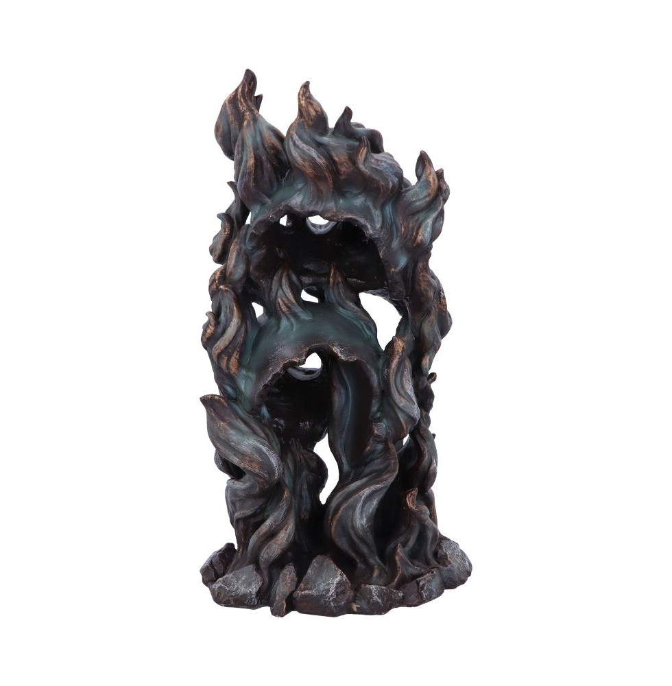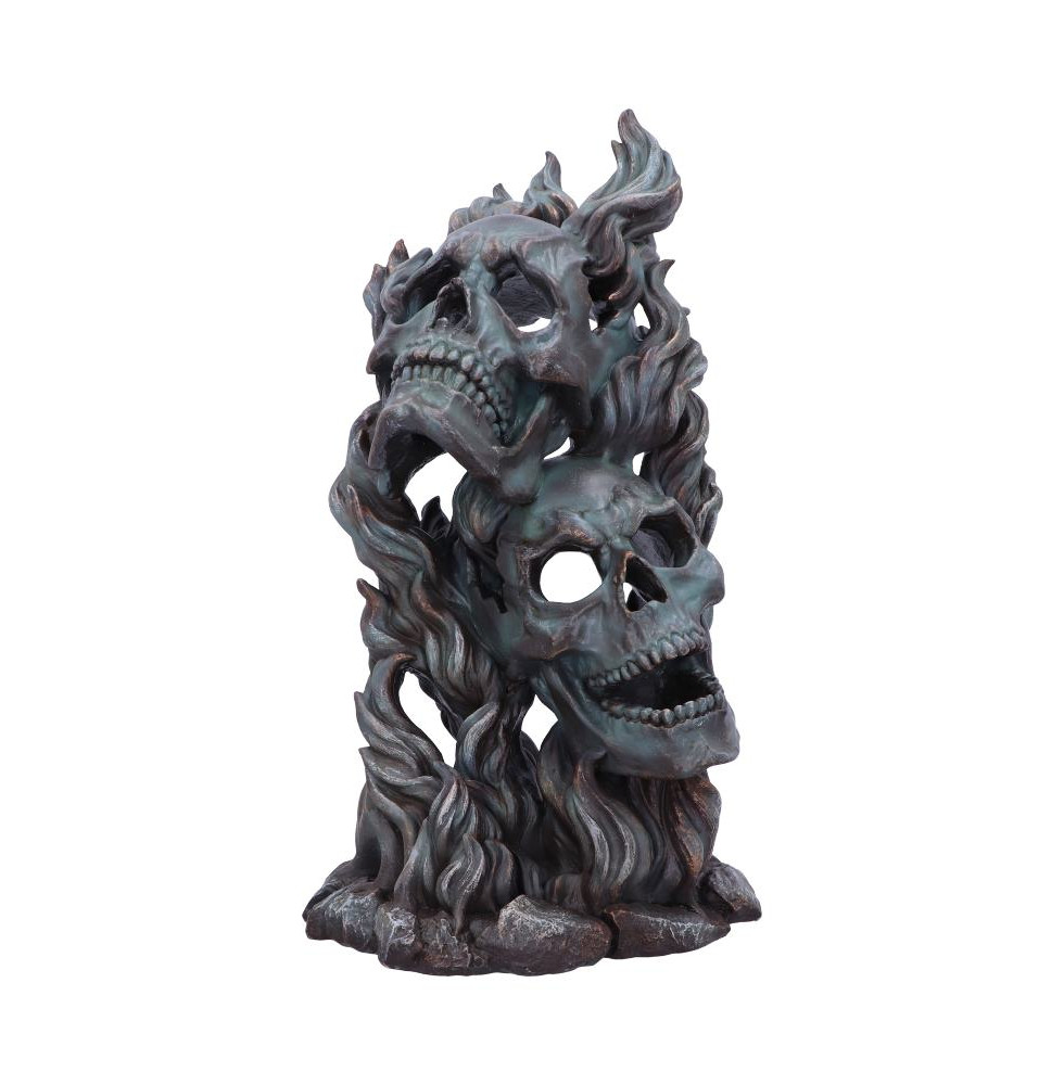 Emerging from the flames of smoke, two skulls can be seen, one of which is looking up to the sky with the fear of god in his eyes. Whilst the other laughs mockingly underneath. Cast in the finest resin before being painstakingly hand-painted, this gruesome figurine is the perfect addition to any gothic collection.
