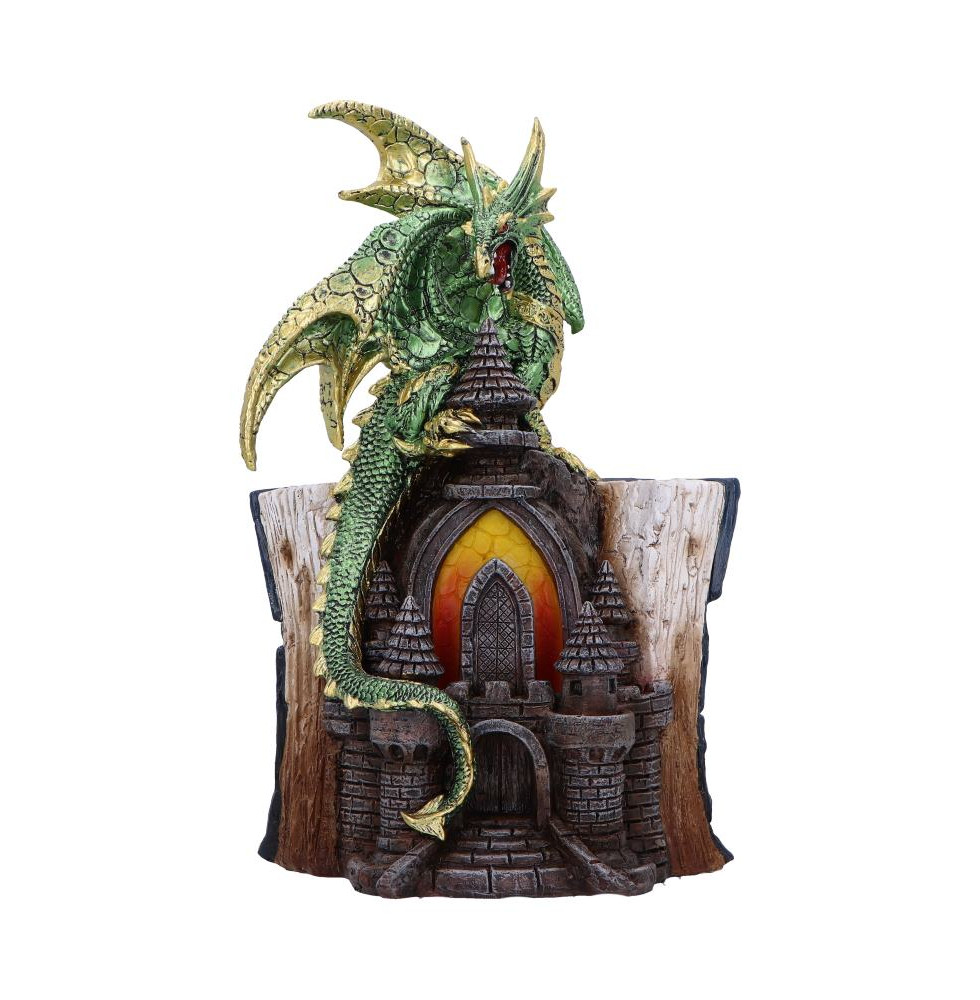 The Draconis Arcanum Figurine is a fantasy collectible that showcases a fearsome green dragon perched atop a crumbling castle entrance. Cast in durable resin and hand-painted with vivid detail, it features textured scales, dramatic wings, and stone-like architecture that brings the scene to life. Each piece comes safely in a foam-lined, full-colour box, ideal for gifting or displaying straight from the packaging. Perfect for dragon collectors, fantasy fans, gamers, or anyone who loves mythical decor, this striking figurine adds a bold. Magical touch to any space. Let a legendary guardian watch over your collection today.
