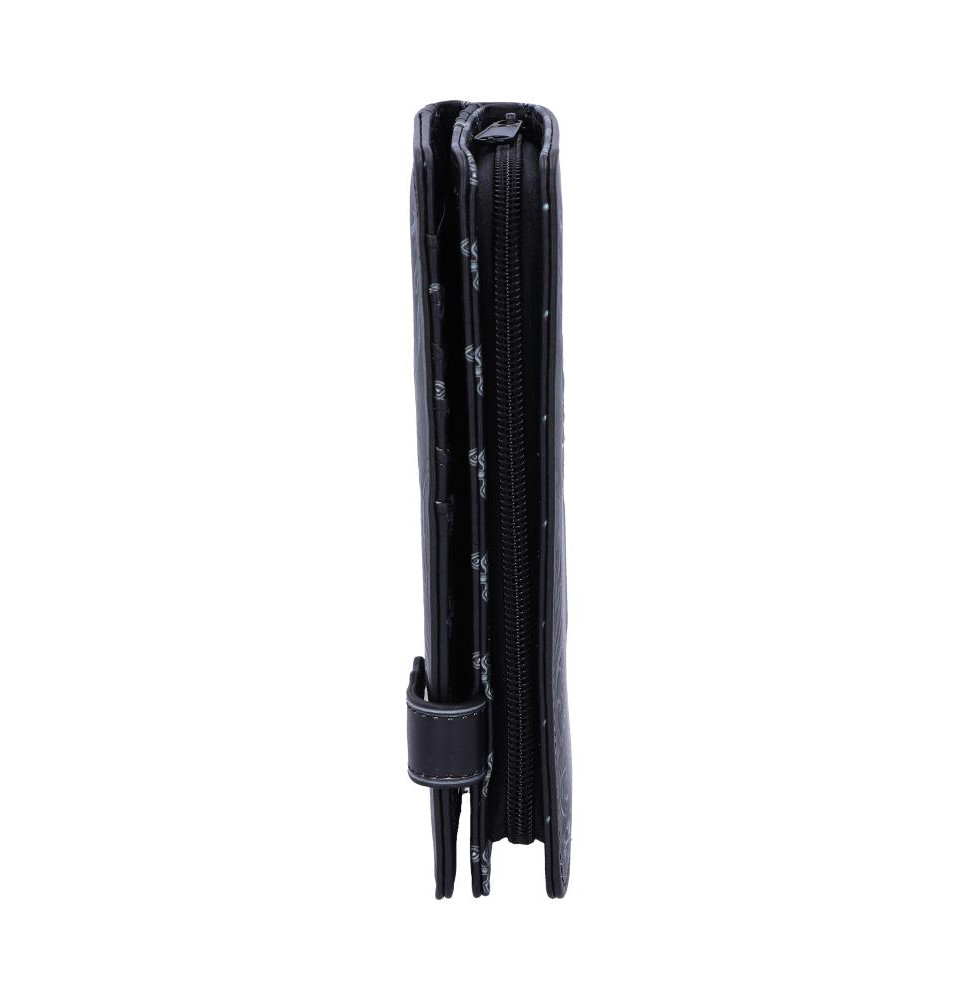From the macabre minds of Nemesis Now's in-house design team is this romantically Gothic purse inspired by 'The Raven' from the writings of Edgar Allen Poe. The purse is layered with intricate baroque patterns, twisting in alternate directions, framing the Raven's Skull on a purple background. The purse can be zipped closed and clipped together securely with a heart shaped lock. Celebrate Poe's twisted mind today with Edgar's Raven collection.