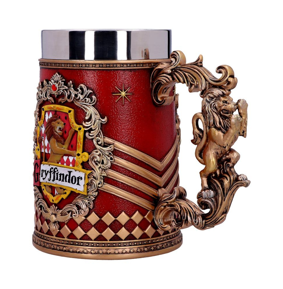 Show your passion for the finest School of Witchcraft and Wizardry in the world with this officially licensed Gryffindor collectible Tankard. Gryffindor is one of the four houses of Hogwarts School of Witchcraft and Wizardry, with students possessing courage, chivalry, and determination, usually being sorted into this house. The emblematic animal is a lion, which can be seen within the crest on the sides of this beautifully crafted piece, along with the house colours of red and gold.Cast in the finest resin before being expertly hand-painted, this collectable Tankard is the perfect addition to any wizarding collection and can be enjoyed by witches, wizards and Muggles alike.