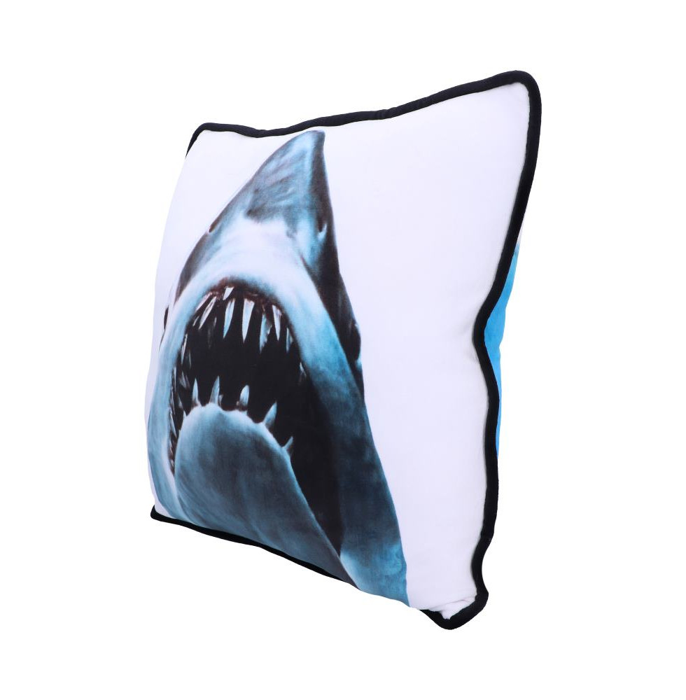 Reach new depths of terror with this luxuriously soft Jaws Cushion. Featuring the instantly recognisible killer shark from the 1975 American thriller movie. This cushion is perfect for cosying up to during movie night, and for displaying in any film fanatic's room.