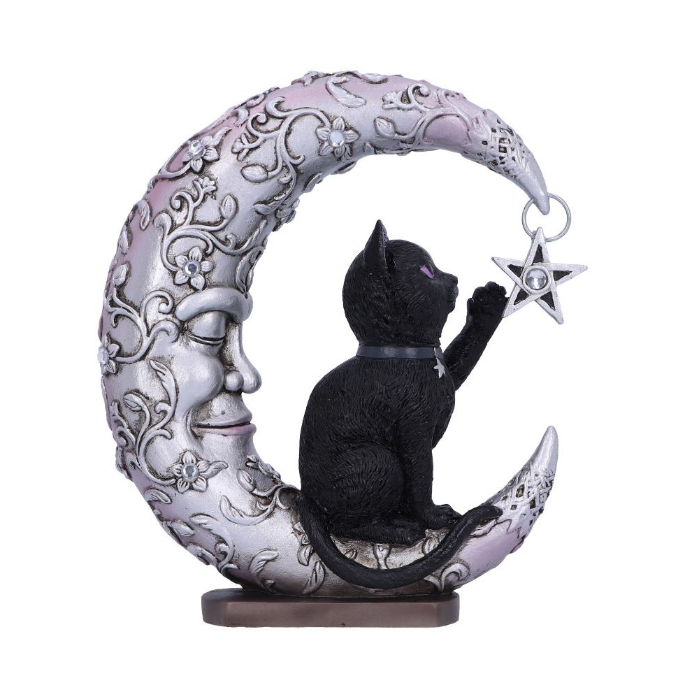Perched on top of a sleeping moon crescent this inquisitive kitty can be seen reaching up to play with the star dangling down from the cusp of the moon. Cast in the finest resin before being expertly hand-painted this fantasy figurine is a must-have product addition to any alternative home.