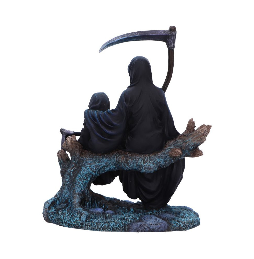 Next In Line captures a poignant moment with a Gothic twist, featuring a Reaper resting on a tree stump, scythe in hand, proudly accompanied by their child. This intricately detailed figurine from Nemesis Now's Fantasy and Gothic Selection merges sentiment, humour, and the macabre seamlessly. Delve into its dark sweetness, perfect for fans of Gothic, Horror, or Dark Fantasy art. Hand-painted and cast from high-quality resin, Next in Line is an ideal addition to any collector's home.