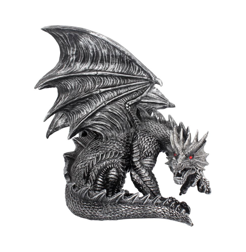 This Gothic Dragon was created by alternative brand Nemesis Now. This pewter-coloured beast sits, as if protecting his hoard. His head turned to the right side as his piercing red eyes lock onto his prey, while his wings are spread high above him. Cast in the finest resin before being painstakingly hand-painted, this Dragon is perfect for anyone who has a passion for mythical beasts.