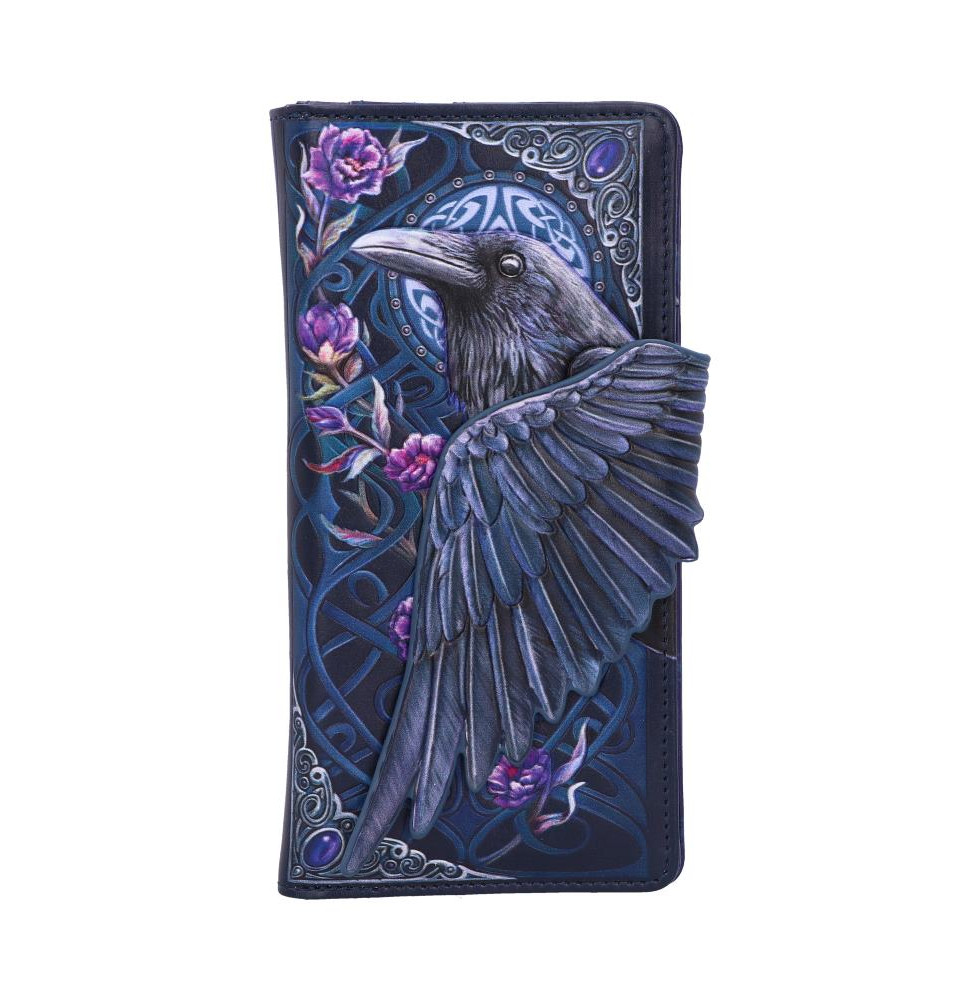 From the untamed imagination of alternative brand Nemesis Now's in-house design team, this embossed Purse is a staple for any fan of the macabre. Ravens have been a part of folklore and literature since the dawn of time, whether they be messengers to the Gods or Heralds of Death, now you can own your own piece of mythology with the Ravens Flight Purse. Featuring the profile of a beautiful Black Raven, with its large wing covering its side, this purse is not what it seems. The wing can be unfastened to open the cardholder slot! Genius! Covered in embossed Baroque designs and floral decorations, this purse has multiple slots for holding both cards, cash and coins.