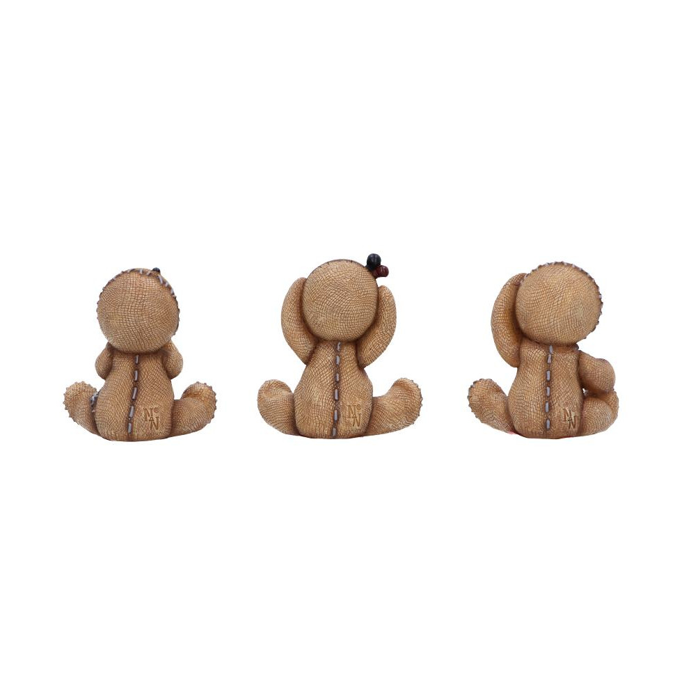The Three Wise Voodoo Dolls by Nemesis Now are a quirky, gothic twist on the classic hear no evil, see no evil, speak no evil trio. Each figurine is crafted from high-quality resin and hand-painted with stitched details, button eyes, and a distressed, handmade look that oozes personality. Packaged in a branded Nemesis Now gift box, theyre ready to display or give as a spooky gift. Perfect for fans of gothic decor, alternative collectibles, and all things weird and wonderful, this set adds a playful dash of dark charm to any space. A must-have for anyone who loves the creepily cute!