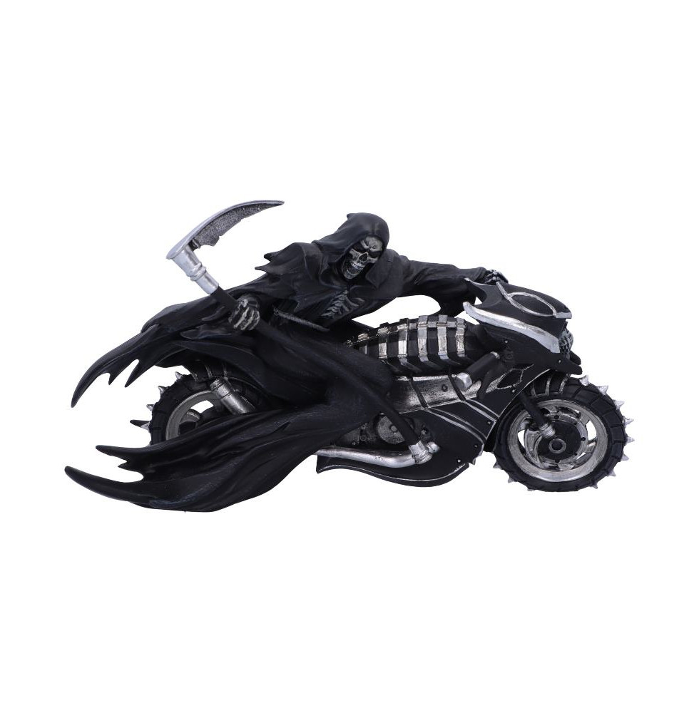 Exclusively designed for Nemesis Now by internationally renowned gothic and fantasy artist James Ryman, is this You Can't Outrun the Reaper figurine. A deathly reaper is dressed in a long black hooded cloak and sits riding his motorbike. Scythe in one hand, he turns his head to the side with a terrifying grin. Cast in the finest resin before being expertly hand-painted, this figurine is perfect for any horror collection.